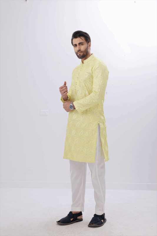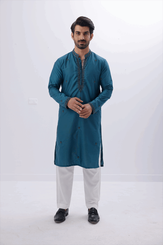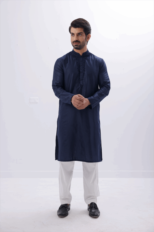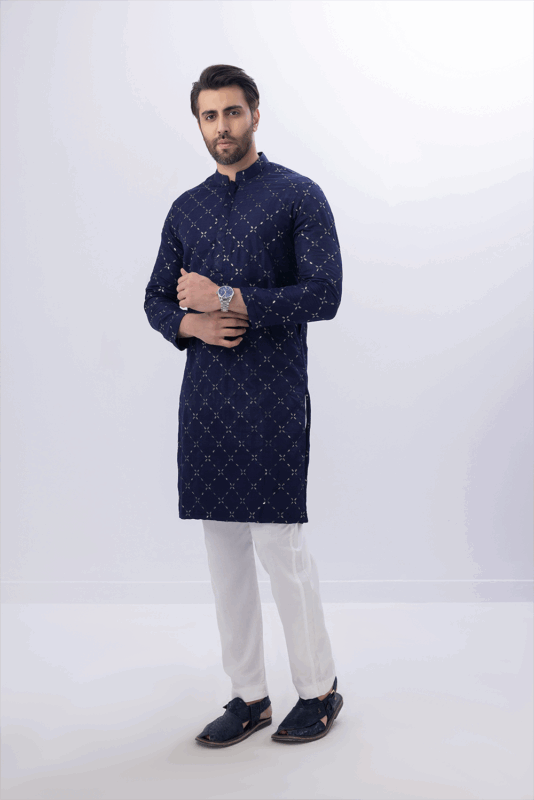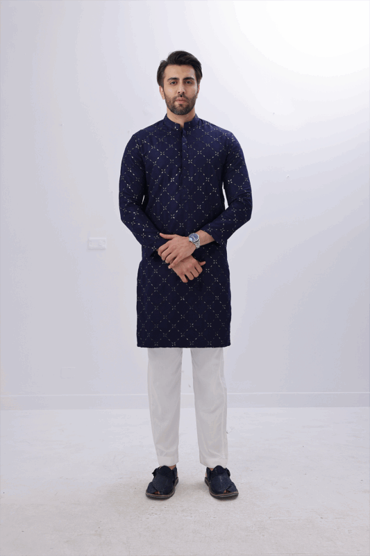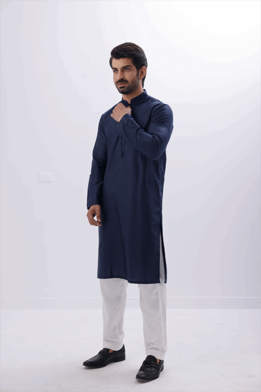 Fabric : Cotton ChickenkariColor : Navy BlueProduct Category : Chickenkari Kurta Additional : Full Machine EmbroideryNote : Pajama Is Not Included.