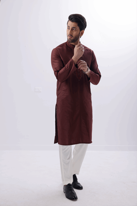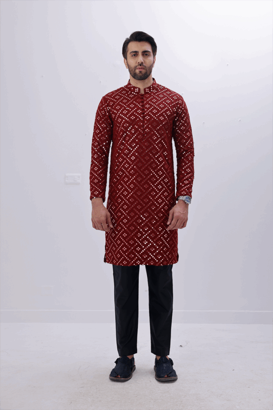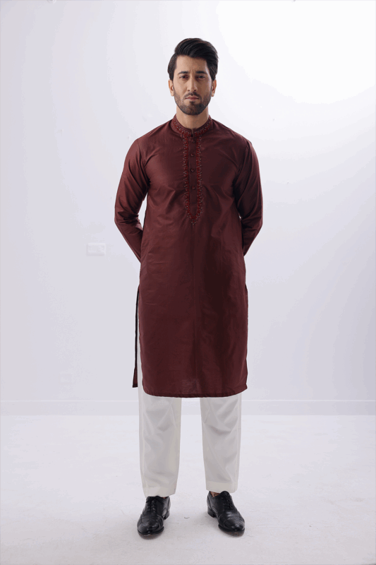 Fabric : Cotton ChickenkariColor : MaroonProduct Category : Chickenkari Kurta Additional : Full Machine EmbroideryNote : Pajama Is Not Included.