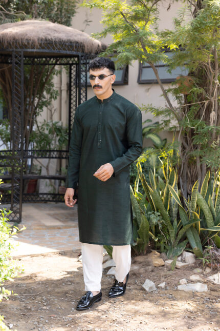 A formal men’s raw silk kurta is the epitome of understated elegance, blending traditional aesthetics with contemporary flair through its