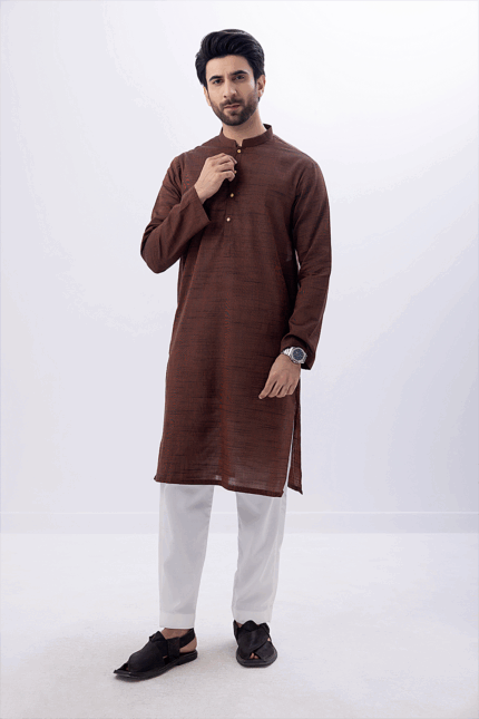 Plain KurtaFabric : Khaddi CottonColor : BrownAdditional : Wooden Buttons