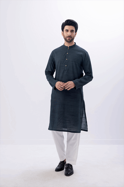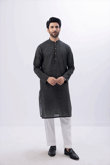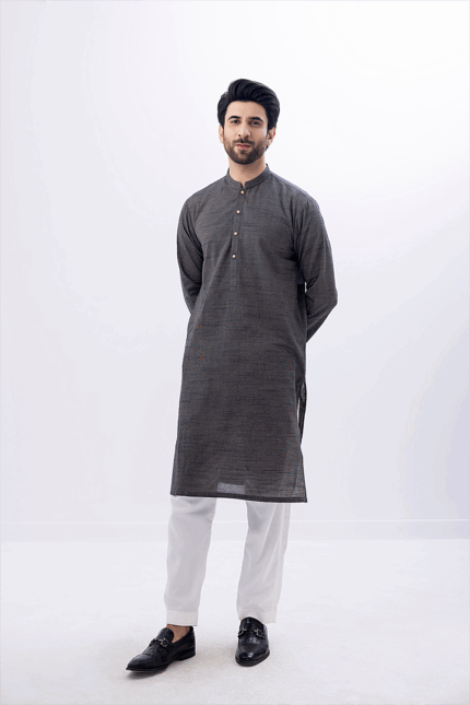 Plain KurtaFabric : Khaddi CottonColor :  Dark GreyAdditional : Wooden Buttons