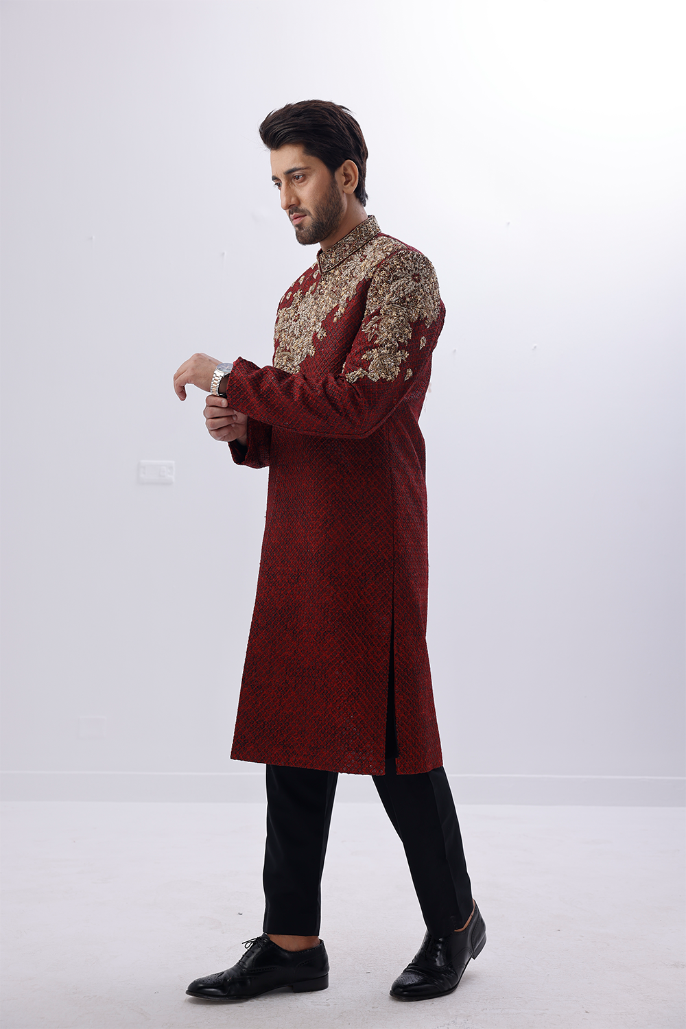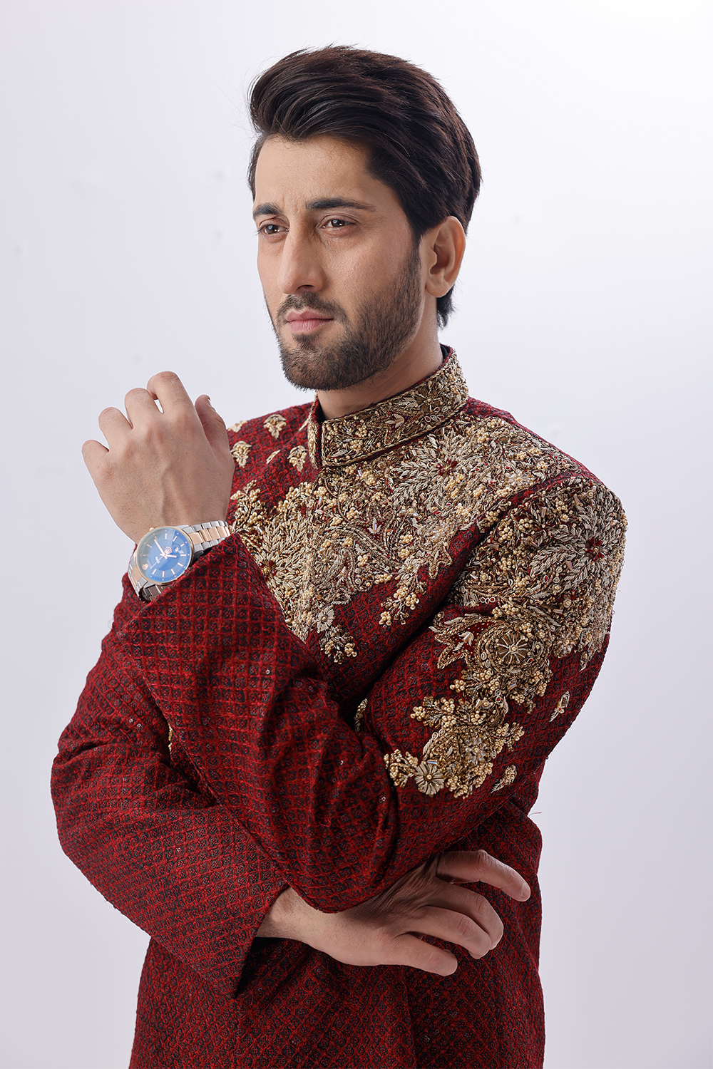Additional : Collar, Front & Sleeves Hand Embroidered